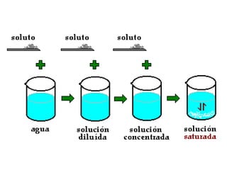 Este documento resume los conceptos fundamentales de las disoluciones acuosas y mezclas homogéneas. Explica que una disolución es una mezcla homogénea de dos o más sustancias donde el soluto se disuelve en el disolvente. También describe los diferentes tipos de disoluciones, los factores que afectan la solubilidad como la temperatura y presión, y los principios de solubilidad basados en las fuerzas intermoleculares entre sustancias.