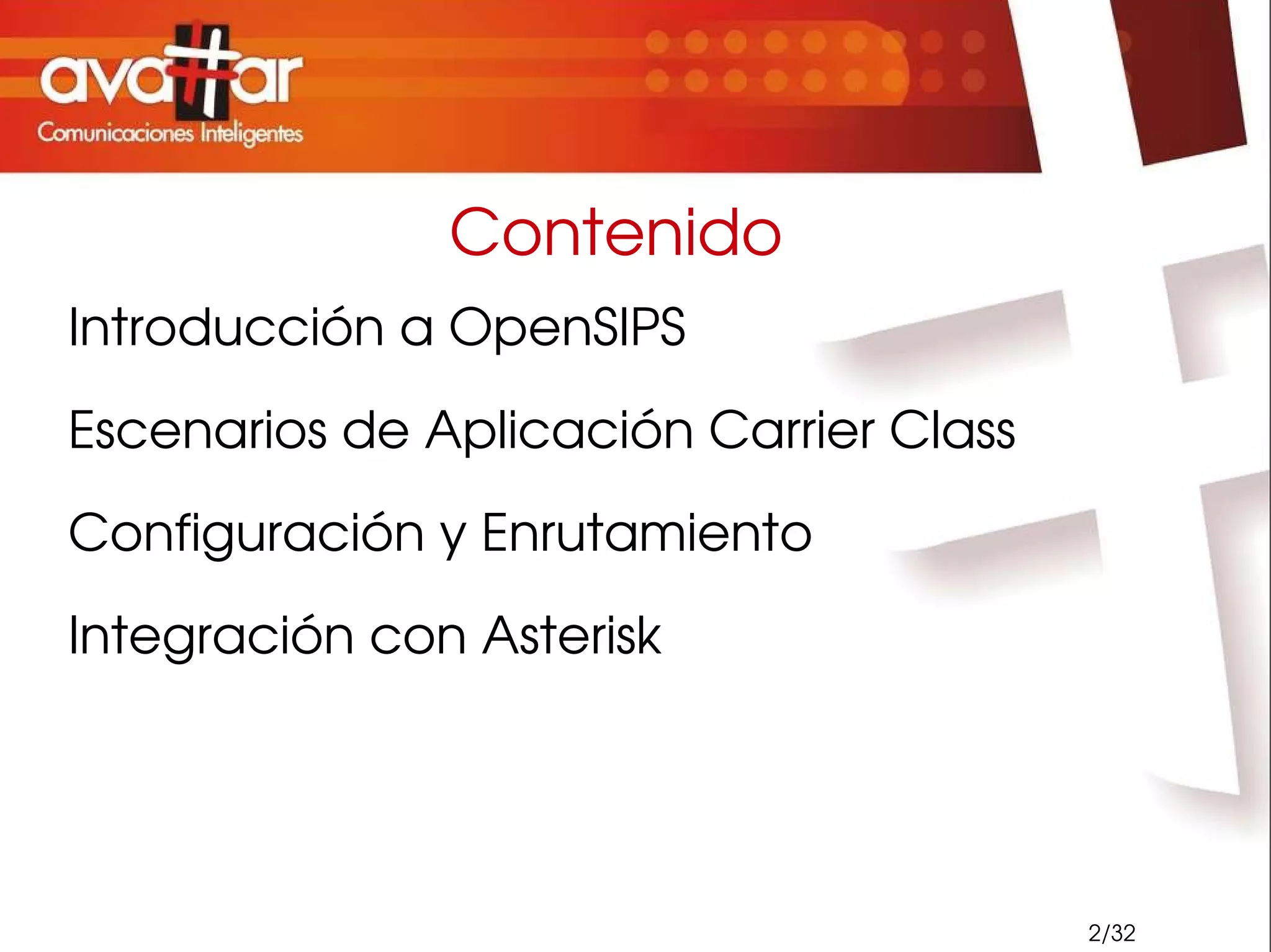 OpenSIPS es un servidor SIP de código abierto que permite implementar soluciones de enrutamiento y valor agregado en redes VoIP. Ofrece funcionalidades como proxy SIP, balanceo de carga, SBC y travesía de NAT. Se integra fácilmente con Asterisk para proveer servicios como voicemail, conferencias y IVR. Su arquitectura modular y escalable lo convierten en una plataforma ideal para proveedores de telefonía sobre IP.