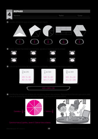 3) El documento proporciona material para repasar conceptos básicos de fracciones.