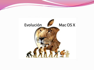 Este documento presenta una breve historia de los sistemas operativos Mac OS desde 1984 hasta 2011. Comenzó como Sistema 1 en 1984 y evolucionó a través de varias versiones hasta convertirse en Mac OS X en 2001. Cada nueva versión agregó mejoras de rendimiento, compatibilidad y nuevas características. La transición a Intel en 2005 y el lanzamiento de versiones como Snow Leopard y Lion modernizaron el sistema operativo.