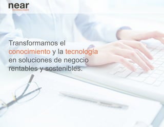 Near es una empresa de tecnología que ofrece soluciones digitales y tecnológicas a sectores como banca, seguros, administración pública e industria. Generó 8,1 millones de euros en facturación en 2014 y forma parte del Grupo Gestamp, una compañía industrial con más del 95% de sus 30,000 empleados titulados universitarios. Near ayuda a sus clientes a mejorar la eficiencia operacional, cumplir con regulaciones y desarrollar estrategias y canales de comunicación digitales.