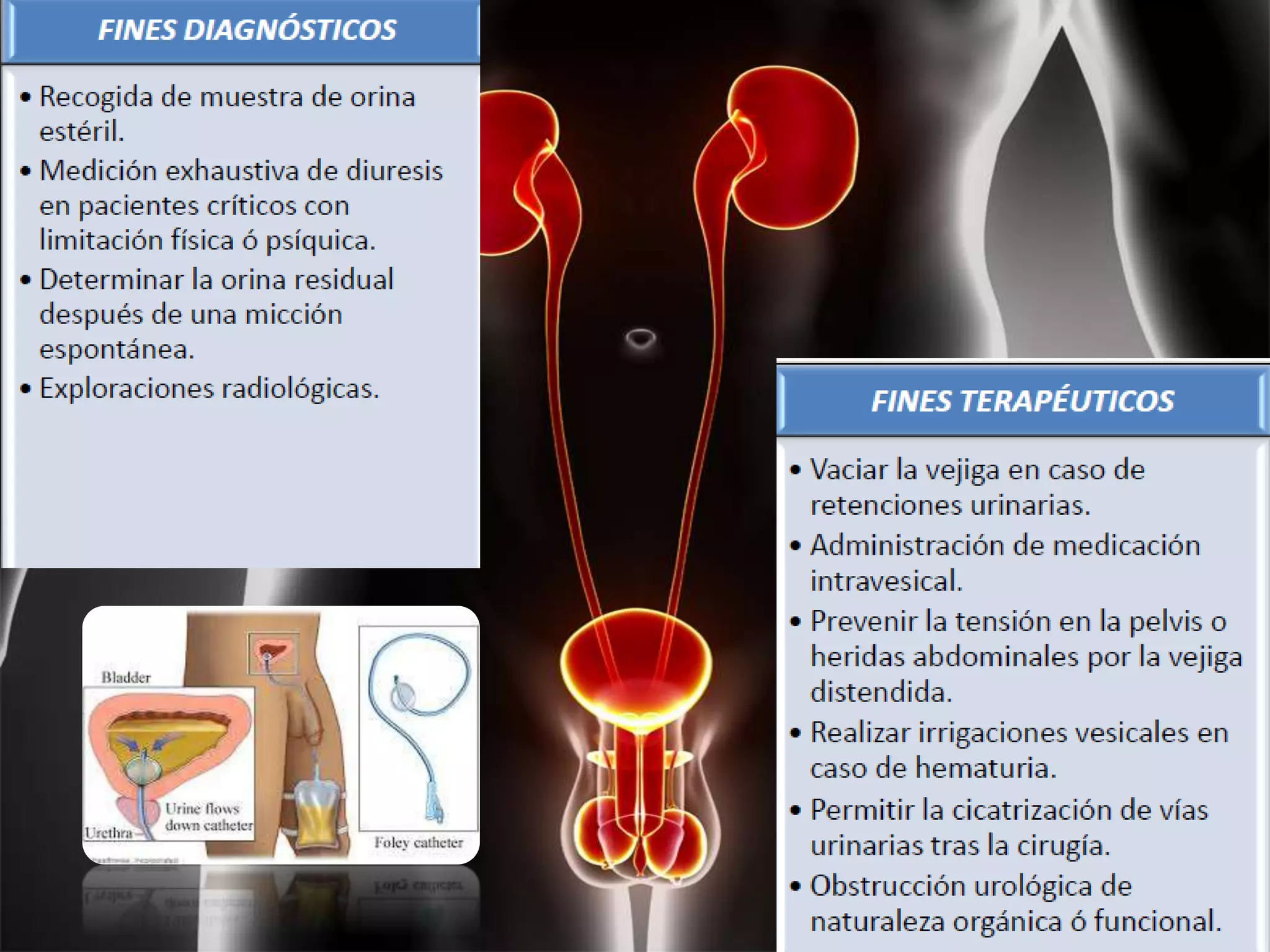 Este documento describe diferentes tipos de sondas vesicales, incluyendo su composición, estructura, tamaño y posibles complicaciones. Las sondas pueden ser de látex, silicona o plástico, tener o no balón, y tener una, doble o triple luz. El tamaño de la sonda depende del paciente. Algunas complicaciones incluyen infecciones, sangrado y la formación de falsas vías.