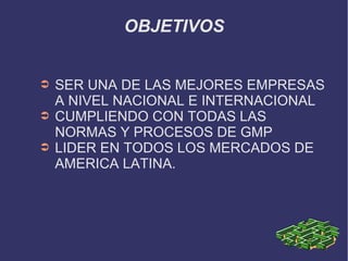 Farmacid es una empresa líder ecuatoriana de productos farmacéuticos que busca ser la mejor a nivel nacional e internacional cumpliendo con las normas GMP. Produce antibióticos como Demexam, Luvit Forte y Artrox, así como los oftalmológicos Visional y Viclar, los cuales pasan controles de calidad para garantizar cero contaminación. La empresa se ubica en Av. Ilalo 1048 entre Conocoto y San Rafael.