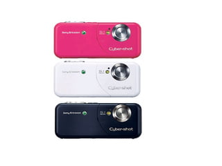 El documento describe el nuevo teléfono Sony Ericsson W61S, que funciona tanto como teléfono móvil como cámara de fotos de 5.1 megapíxeles con zoom óptico 3x. Presenta características como Bluetooth, GPS, ranura para tarjeta microSD, y servicios de navegación, música y pagos. Tiene una pantalla ancha VGA de 2.8 pulgadas ideal para usar como televisión de bolsillo, y salida de video para compartir contenido con otros.