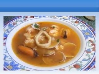 La sopa de marisco se prepara cociendo huesos y cascaras de marisco junto con verduras durante 2 horas para obtener un caldo de sabor. Luego se añaden mejillones, gambas y trozos de rape al caldo y se cuece durante 30 minutos más. Finalmente, la sopa se sirve encima de rebanadas de pan tostado.