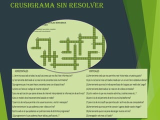 El documento contiene información sobre un curso, el nombre de un estudiante, y indica que se entregó un crucigrama sin resolver y luego el mismo crucigrama pero resuelto.