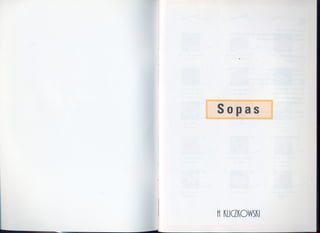 Este documento presenta una lista de 18 sopas diferentes de varios países y regiones. Incluye sopas frías como la sopa fría de tomates y atún a la plancha y la sopa fría de fresas, así como sopas calientes como la sopa de los siete ramos, la sopa de setas a la catalana y el caldo verde gallego. La lista proporciona una amplia variedad de estilos y ingredientes de sopas de toda Europa.