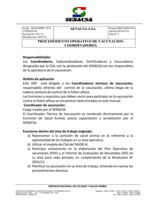 1) Los coordinadores son responsables de planificar y supervisar las campañas de vacunación contra la fiebre aftosa en sus áreas asignadas.