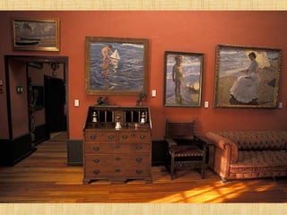 Joaquín Sorolla y Bastida fue un pintor español nacido en 1863 en Valencia. Pintó más de 2,000 obras a lo largo de su carrera, principalmente paisajes y escenas de la costa levantina, retratos y visiones de las diferentes regiones de España. Es conocido como "el pintor de la luz" por su habilidad para capturar la luz mediterránea en sus cuadros. En 1911, Sorolla recibió el gran encargo de pintar 14 murales para el Hispanic Society Museum & Library de Nueva York que representaban las