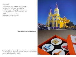 Souvenir Definición: Proviene delfrancés y significa “objeto que sirve como recuerdo de la visita a un lugar” Recuerdos de Bolsillo. “es un objeto que atesora a las memorias que están relacionadas a él”. Iglesia San Francisco de Castro.