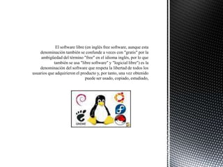 El software libre permite a los usuarios la libertad de copiar, distribuir, estudiar, modificar y mejorar el software. Con estas libertades, los usuarios (individualmente o en forma colectiva) controlan el programa y lo que hace. Algunas limitaciones potenciales incluyen una falta de garantía por parte del autor, menor estabilidad para multimedia y juegos, y menor compatibilidad con hardware.