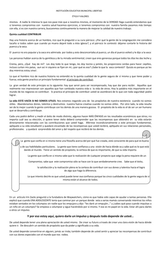 El documento describe cinco cualidades de las personas seguras de sí mismas: 1) autoestima, 2) una visión, 3) propósitos, 4) compromiso, y 5) contribuir. Explica que adoptando estas cualidades, uno puede tomar el control de su vida incluso cuando las circunstancias parecen estar fuera de control. Relata ejemplos como Terry Fox y su propósito de recaudar fondos para la investigación del cáncer a pesar de haber perdido una pierna, para ilustrar el poder de tener un propósito y compromiso.
