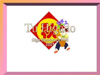 El documento presenta al hígado como un órgano vital, responsable de numerosas funciones que son esenciales para el funcionamiento del cuerpo humano. Se destacan los efectos negativos del alcohol, la automedicación y una dieta pobre, así como la importancia de cuidar la salud emocional y mental para mantener el hígado en buen estado. Además, se menciona que el hígado puede regenerarse y que su salud está relacionada con el bienestar general y la felicidad de la persona.