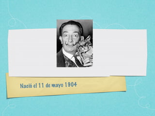 Salvador Dalí nació en España en 1904 y vivió en Cataluña la mayor parte de su vida. Unos eventos importantes durante su vida fueron las dos guerras mundiales. En 1916, Dalí descubrió la pintura moderna durante unas vacaciones de verano.