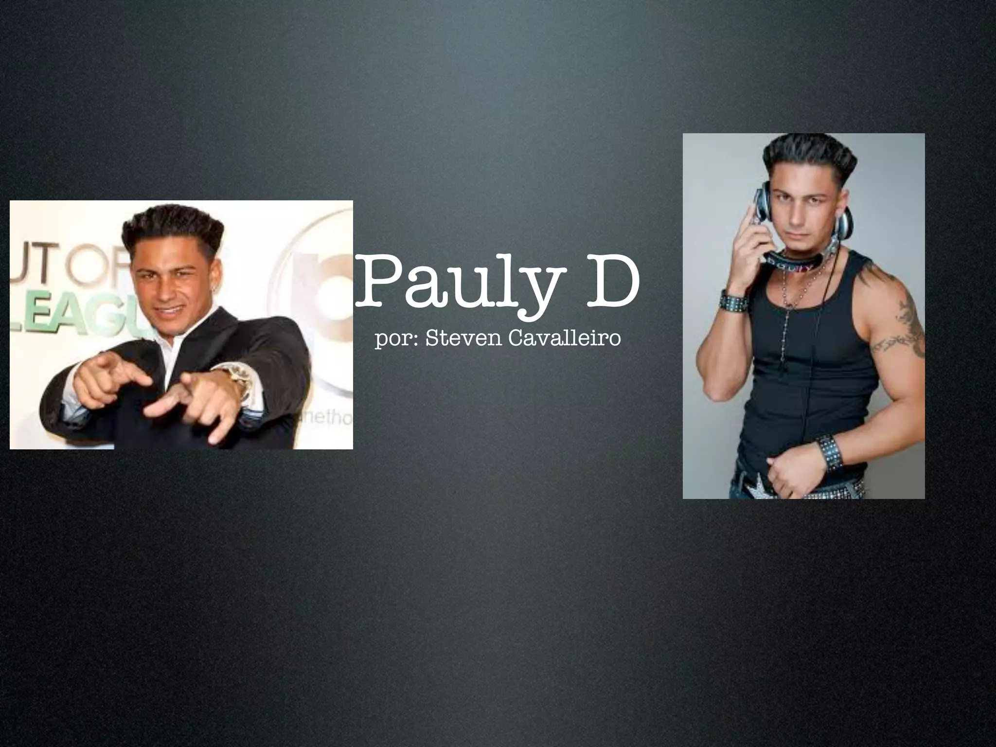 Pauly D es un hombre divertido y práctico de Rhode Island que trabaja en una tienda de camisetas y juega al fútbol americano. Aunque vive en Rhode Island, es popular en el programa de televisión Jersey Shore por saber dónde están los mejores clubes, playas y cómo festejar.