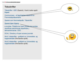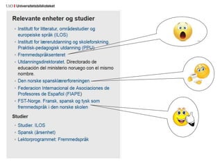 El documento proporciona enlaces y recursos educativos relacionados con el estudio del español y la literatura en lenguas románicas, destacando su utilidad para presentaciones. Incluye herramientas digitales y páginas web relevantes. Se menciona a José María Izquierdo como contacto principal en la Universidad de Oslo.