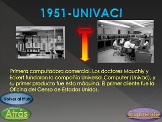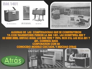 El documento resume brevemente la historia de las computadoras desde los primeros dispositivos mecánicos como el ábaco y la Pascalina hasta las computadoras electrónicas modernas. Destaca los hitos de la máquina analítica de Charles Babbage, la tarjeta perforada de Herman Hollerith, la ENIAC como primera computadora electrónica y el desarrollo de los circuitos integrados que llevaron a las computadoras personales.