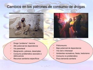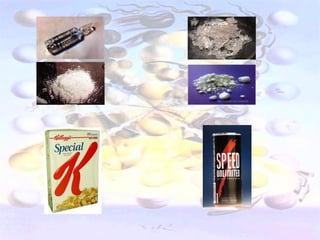 Este documento discute las drogas de síntesis speed (metanfetamina) y ketamina. Primero, destaca que aunque se consideran "nuevas drogas", en realidad algunas como la metanfetamina y la ketamina existen desde hace décadas. Segundo, señala que aunque parezca que hay cientos de drogas de síntesis en el mercado, en realidad la mayoría son variaciones químicas de un número limitado de compuestos. Tercero, sugiere que aunque el consumo de drogas de síntesis a menudo se as