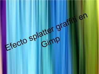 Este documento proporciona instrucciones en 6 pasos para crear un efecto de graffiti "splatter" en Gimp. Primero, se crea un nuevo documento y se añade texto con la herramienta de fuente Amsterdam Graffiti. Luego, se aplica un degradado de dos colores al texto y se añade una capa negra debajo para darle profundidad. Finalmente, se descargan pinceles personalizados y se usan para decorar una capa debajo del texto con diferentes colores y estilos, completando así el efecto de graffiti espar