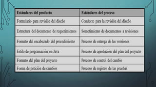 Este documento describe varios métodos y estándares para el aseguramiento de la calidad de sistemas de información. Entre los métodos más comunes se encuentran auditorías, pruebas de validación, comparación de datos, pruebas de estrés, pruebas de uso y revisiones por pares. También cubre estándares de producto, proceso y documentación. Las herramientas de prueba como WinRunner y LoadRunner se utilizan comúnmente para probar el rendimiento y la tolerancia al estrés de las aplicaciones.
