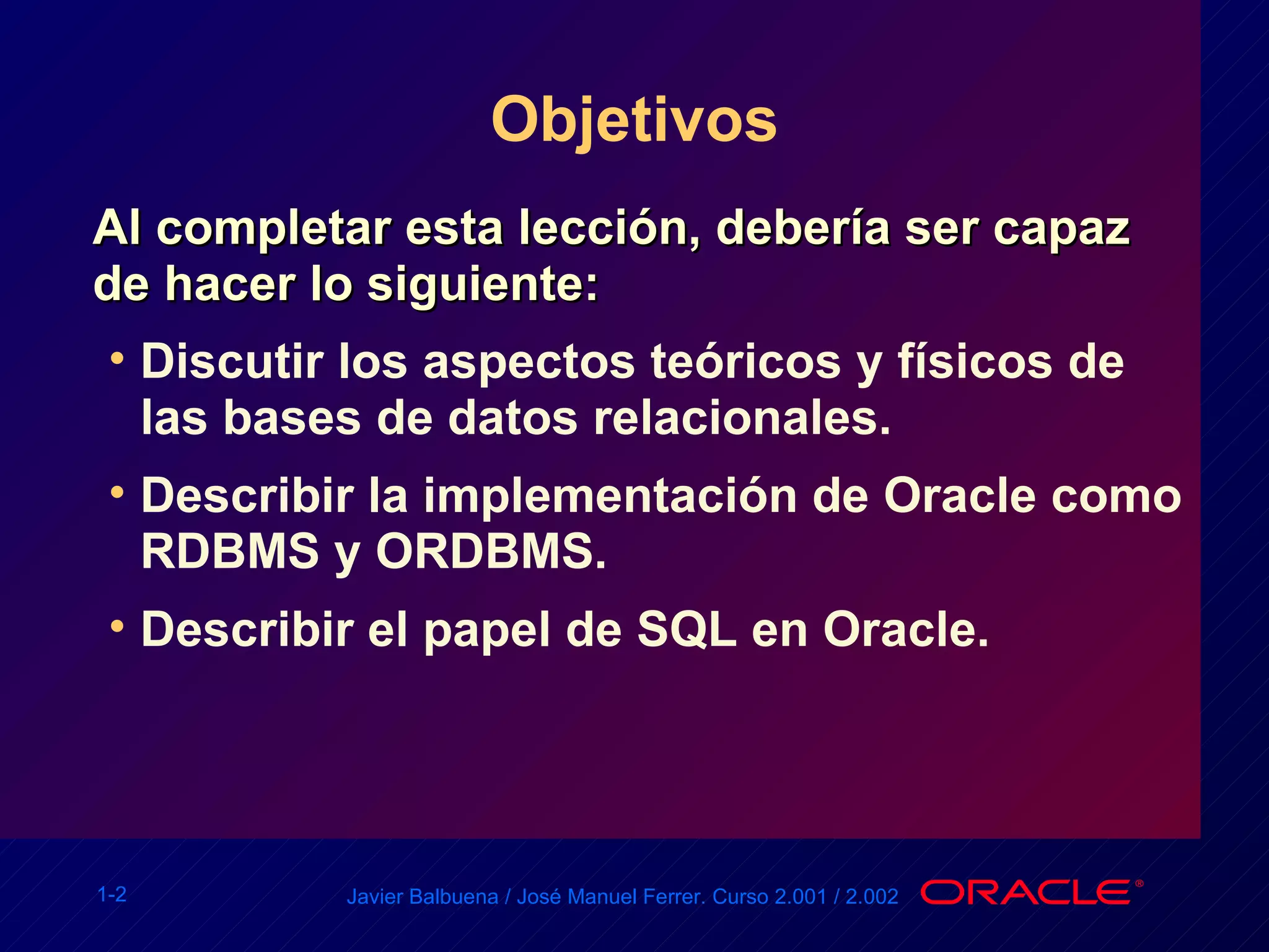 El documento describe los conceptos básicos de las bases de datos relacionales y Oracle. Explica que Oracle es un sistema de base de datos relacional y orientado a objetos que permite almacenar y gestionar información mediante SQL y PL/SQL. También describe las tablas y conceptos clave utilizados en el curso sobre bases de datos relacionales.