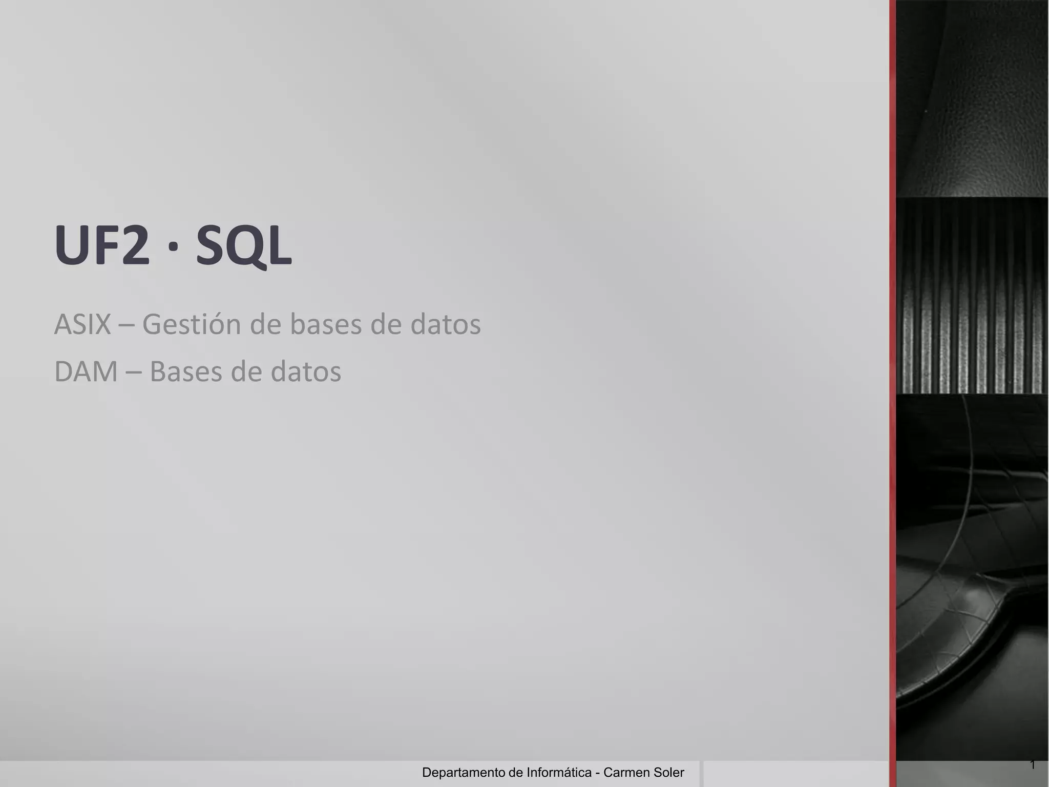 El documento aborda la gestión de bases de datos utilizando SQL, centrándose en la creación, modificación y supresión de tablas, así como el manejo de restricciones de integridad. Se explican en detalle las instrucciones DDL para definir tablas y sus columnas, así como las restricciones como claves primarias y foráneas. También se cubren las instrucciones DML para insertar, actualizar y eliminar datos, y se introducen conceptos básicos sobre consultas y tipos de datos.