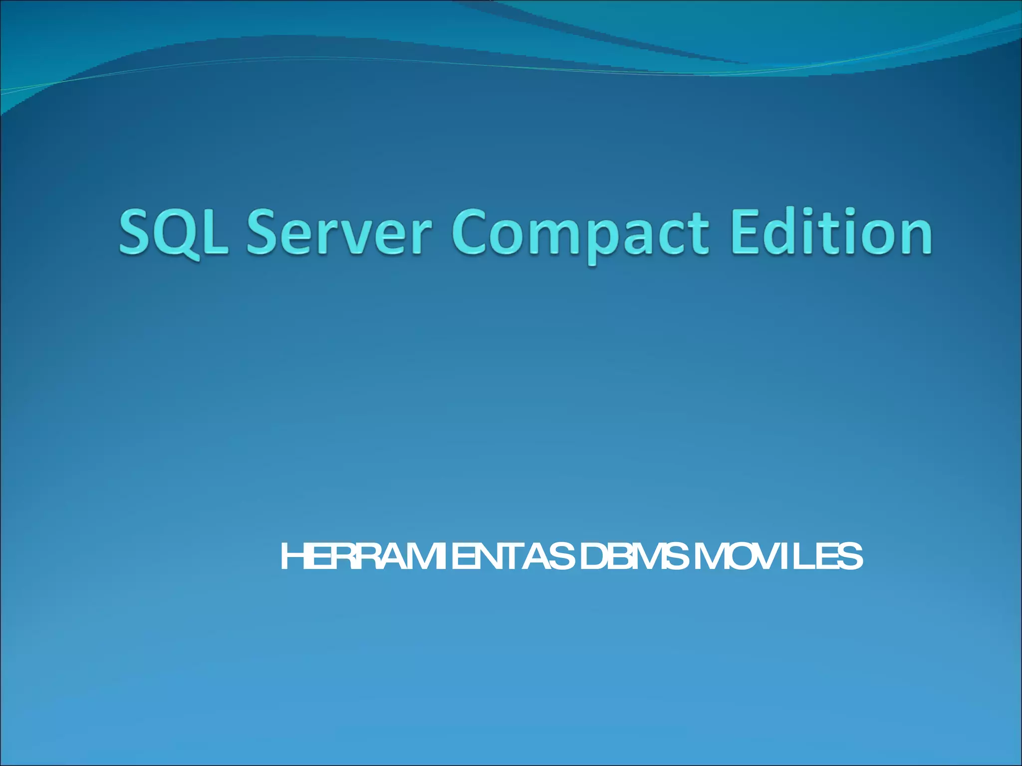 Microsoft SQL Server 2005 Compact Edition (ahora denominada SQL Server Compact Edition) es una base de datos compacta ideal para aplicaciones móviles y de escritorio que ofrece funcionalidad de base de datos relacional en un espacio reducido, con un sólido almacén de datos, un procesador de consultas de optimización y conectividad escalable y fiable. SQL Server Compact Edition cuenta con mejoras como la sincronización de datos, un motor de almacenamiento mejorado y un procesador de consultas optimizado para mejorar la confiabilidad y el rendimiento.