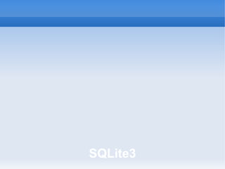 SQLite3 es un sistema de gestión de bases de datos relacional ligero y portable. Algunas de sus características clave son que es de código abierto, no requiere configuración, es multiplataforma, y la base de datos es un simple archivo. SQLite se usa comúnmente en aplicaciones móviles, navegadores web, y proyectos de código abierto.