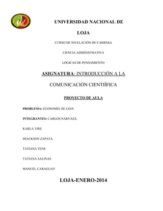 El documento describe la economía, agricultura, ganadería, industria, comercio, turismo, cultura, deporte, música, gastronomía y televisión de la provincia de Loja, Ecuador. Los principales productos agrícolas son café, fréjol seco y cereales. La ganadería es una actividad importante. La única industria relevante es Malca, dedicada a la producción de azúcar. El turismo se centra en atracciones como el Bosque Petrificado de Puyando y la ciudad de Vilcabamba. La cultura local