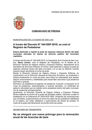1. La Municipalidad de San Luis creó un Registro de Podadores para regular la poda de árboles.