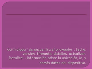 El documento describe las opciones de configuración disponibles para diferentes tipos de dispositivos en el Panel de Control de Windows. Enumera las secciones generales que se pueden encontrar para discos duros, unidades de CD/DVD, tarjetas de red y otros dispositivos, como General, Propiedades, Controlador y Detalles.