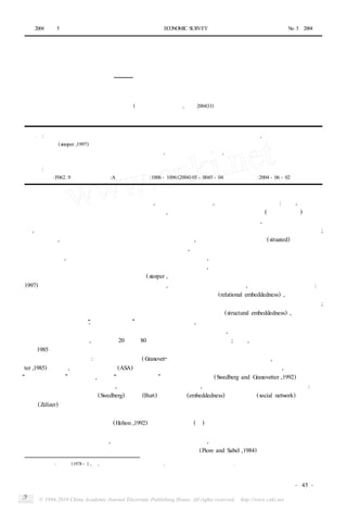 3) El documento explora cómo los enfoques de la "integración estructural" y la "integración relacional" ayudan a comprender cómo las redes sociales influyen en los resultados económicos.