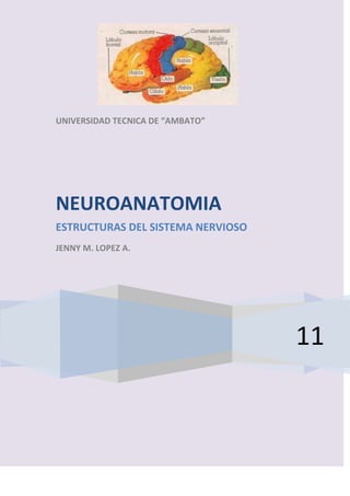 El documento resume las estructuras del sistema nervioso. Describe que el sistema nervioso central está formado por el encéfalo y la médula espinal, mientras que el sistema nervioso periférico conecta al sistema nervioso central con los receptores, músculos y glándulas. También describe las neuronas, clasificándolas según su morfología en unipolares, bipolares y multipolares, y según su tamaño en neuronas de Golgi tipo I y tipo II. Finalmente, resume la estructura de la neurona, incluyendo el n