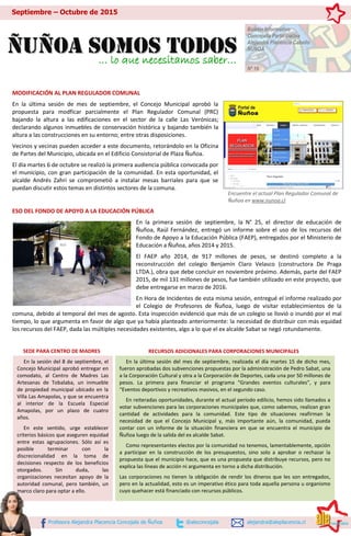 El Concejo Municipal aprobó modificaciones al Plan Regulador Comunal, incluyendo bajar la altura permitida de edificios en ciertas calles y declarar inmuebles de conservación histórica. Se realizó una audiencia pública donde el alcalde se comprometió a instalar mesas barriales para discutir los cambios.