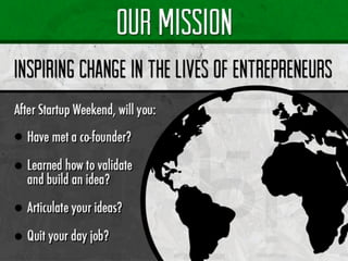 Este documento contiene información sobre un evento Startup Weekend que tuvo lugar en Galicia. Incluye detalles sobre los organizadores, patrocinadores, jueces, premios y los tres equipos ganadores. También contiene hashtags relacionados con eventos Startup Weekend en diferentes ciudades y países.