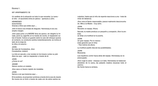 Este documento describe dos escenas de una película de Steampunk. La primera escena tiene lugar en un apartamento donde Constantine examina a una niña poseída. La segunda escena muestra un enorme espejo cayendo desde el séptimo piso de un edificio.