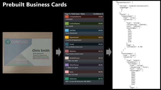 Este documento presenta Form Recognizer, un servicio de Azure Applied AI que permite extraer datos estructurados a partir de formularios mediante aprendizaje automático sin necesidad de etiquetado manual. Se explica que con solo unos pocos formularios de muestra se puede entrenar un modelo para reconocer diferentes tipos de formularios como facturas, solicitudes de tarjetas de crédito y formularios médicos. Finalmente, se destacan los beneficios de automatizar los flujos de trabajo y reducir costos al leer y procesar documentos.