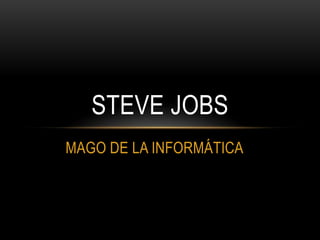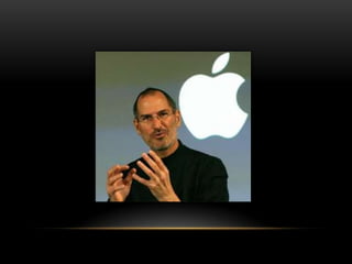 Steve Jobs fue un empresario e innovador estadounidense que cofundó Apple Computer. Junto a Stephen Wozniak creó el Apple I y Apple II, los primeros ordenadores personales exitosos comercialmente. Más tarde lideró el desarrollo del Macintosh, introduciendo el concepto de interfaz gráfica de usuario basada en ventanas, iconos y ratón. A lo largo de su carrera revolucionó industrias con innovaciones como el iPod, iPhone, iPad y tiendas de música digital como iTunes.