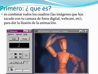 Stop motion es una técnica de animación que combina múltiples imágenes fijas para crear la ilusión de movimiento. Se recomienda usar programas de edición de video y bajar la calidad de las fotos para facilitar la combinación de cuadros en la animación.