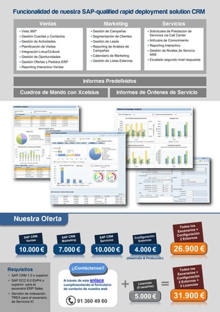 Stratesys ofrece una solución rápida de implementación de SAP CRM que facilita la adopción de la plataforma SAP CRM en un corto período de tiempo y con una inversión limitada. Los clientes pueden seleccionar la funcionalidad, arquitectura y soporte que necesitan según sus requisitos de negocio y tecnológicos. La solución proporciona funcionalidad robusta, implementación rápida, costes previsibles y amplias posibilidades de crecimiento.