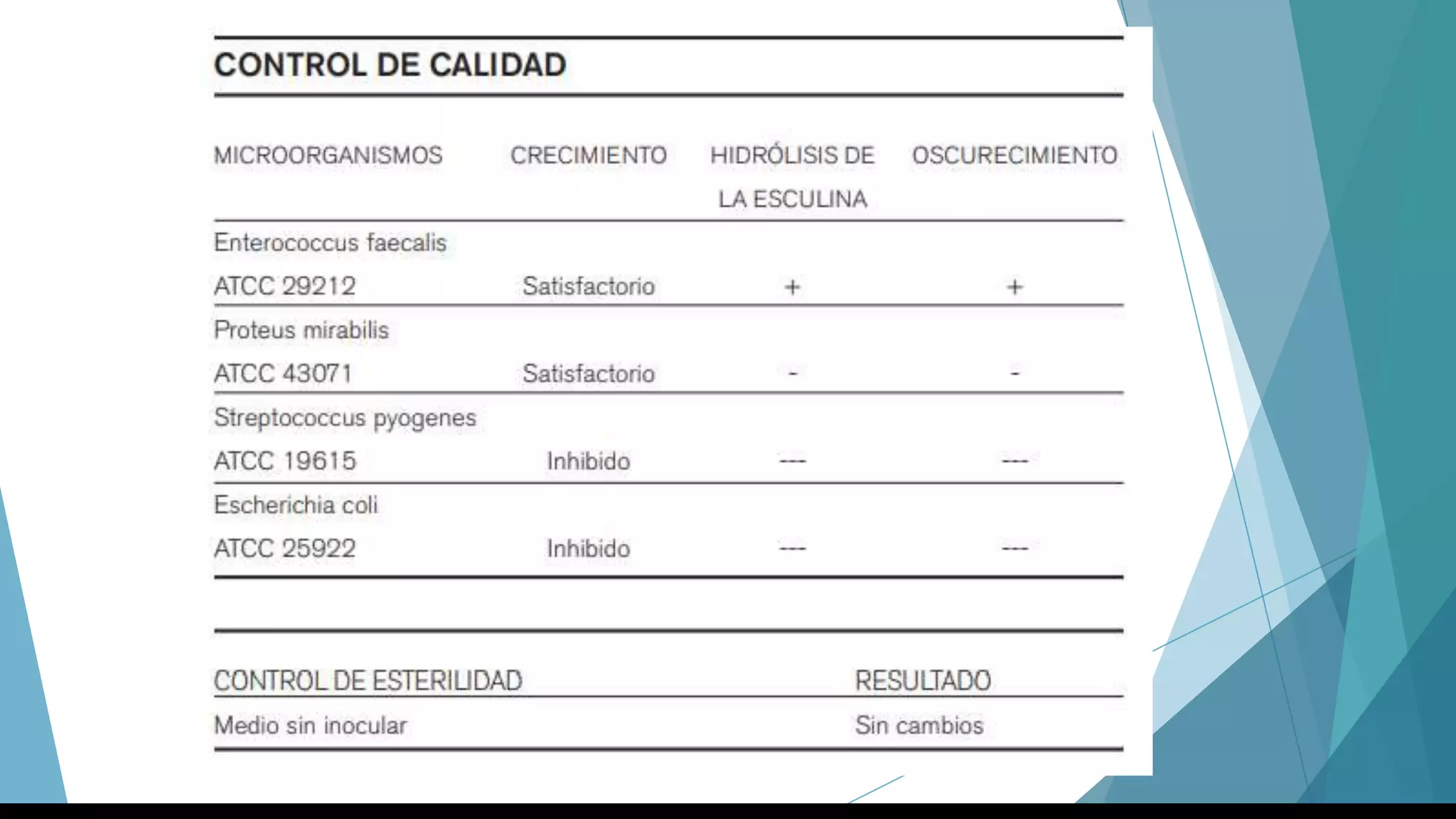 selectivos con sales biliares, esculina y azida de sodio (medio Pfizer).