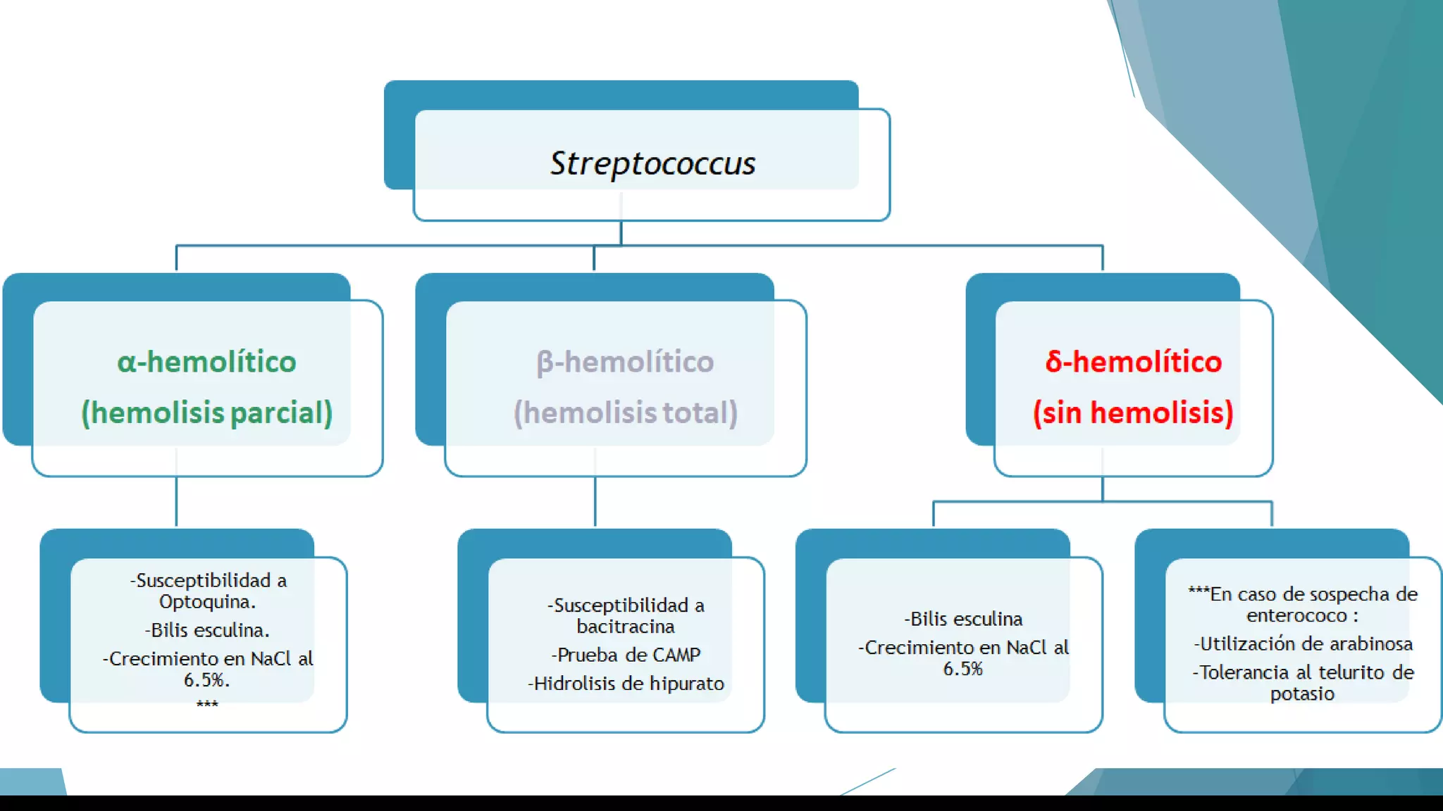 y g-hemolíticos, que se clasifican por pruebas bioquímicas.