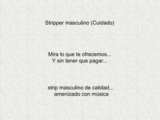Un anuncio ofrece un striptease masculino gratuito con música para entretenimiento, sin necesidad de pagar.