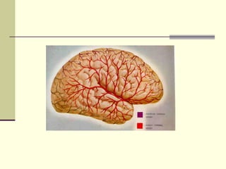 Este documento proporciona información sobre la enfermedad cerebrovascular. Define la enfermedad cerebrovascular como una alteración de la función cerebral causada por una lesión vascular que dura más de 24 horas. Explica que puede ser isquémica, debido a la obstrucción de una arteria cerebral, o hemorrágica, causada por una hemorragia intracerebral o subaracnoidea. También describe los factores de riesgo, la fisiopatología y los diferentes tipos como ataques isquémicos transitorios e infartos cerebrales.