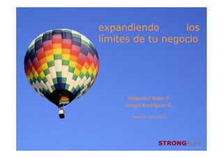Este documento ofrece los servicios de marketing y comercialización de Strongplay para ayudar a las empresas a expandir sus negocios. Strongplay puede ayudar estratégicamente con planes de marketing, branding, investigación de mercado y tácticamente con generación de leads, marketing directo, eventos y más. El equipo de Strongplay tiene amplia experiencia en marketing y espíritu empresarial para identificar nuevas oportunidades para los clientes.