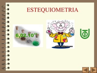 Este documento trata sobre la estequiometría y conceptos relacionados como masa atómica, mol y peso molecular. Explica que la estequiometría es el procedimiento químico-matemático para determinar las cantidades de reactivos y productos en una reacción química. También define conceptos como masa, peso, masa atómica, mol y unidades de masa atómica usando al carbono-12 como patrón. Finalmente, introduce las leyes de conservación de masa, proporciones definidas y proporciones m