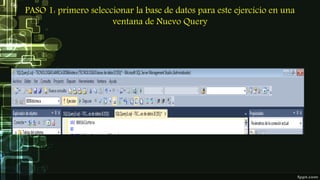 El documento describe cómo generar informes de SQL Server utilizando subconsultas y consultas multitabla. Instruye sobre cómo seleccionar una base de datos, generar un informe que muestre los campos de una tabla usando una subconsulta, y crear un informe que devuelva libros publicados por un autor específico usando un JOIN interno.