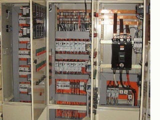 Una subestación eléctrica es una instalación destinada a modificar los niveles de tensión de una red eléctrica para facilitar el transporte y distribución de la energía. Se clasifican según su ubicación, tipo de tensión manejada y función. Los tableros de distribución protegen cada circuito de una instalación eléctrica a través de fusibles y protecciones. Existen tableros empotrados, de superficie y subestaciones aéreas, de piso y subterráneas que cumplen funciones de protección, medición,