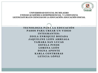Este documento describe los pasos para crear un video educativo para niños utilizando herramientas tecnológicas. Explica que la tecnología puede ser útil en la educación inicial y ofrece instrucciones detalladas sobre cómo crear y editar un video en Windows Live Movie Maker e insertarlo en YouTube.