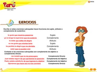 Escribe si estas oraciones subrayadas hacen funciones de sujeto, atributo o